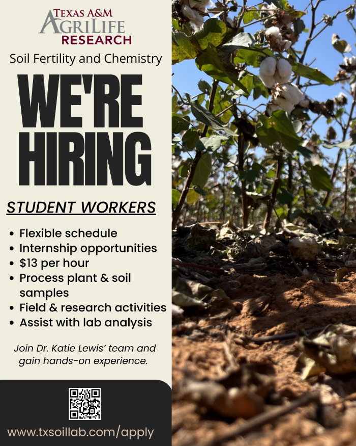 TAMU AgriLife Research - Soil Fertility & Chemistry student workers [posted 2/10/2026]